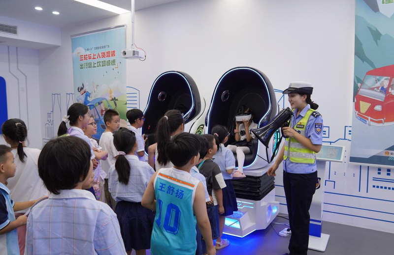 最让孩子们兴奋的是VR体验环节。戴上VR眼镜,他们瞬间“置身”于模拟交通场景中,亲身体验安全过马路的正确方式、规范佩戴安全头盔的操作流程。逼真的场景让孩子们深刻感受到,一旦违反交通规则可能面临的危险,进一步强化了“遵守规则才能保障安全”的认知。